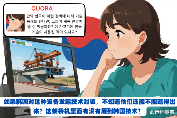 韩国网友:如果韩国对这种设备发起技术封锁,不知道他们还能不能造得出来?这架桥机里面有没有用到韩国技术?
