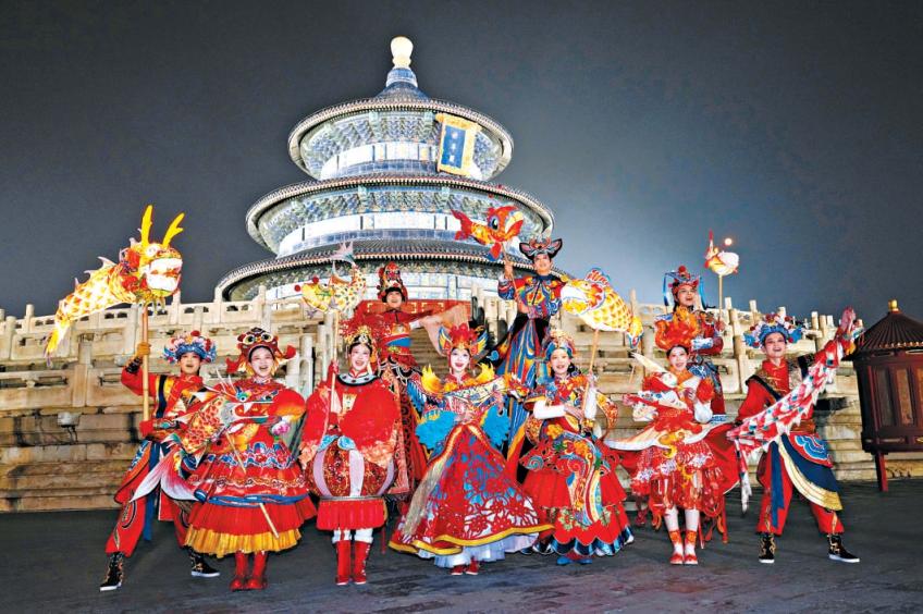 元宵夜,融入九种非遗元素的《非遗灯韵》展演在祈年殿下精彩亮相。记者 刘平摄